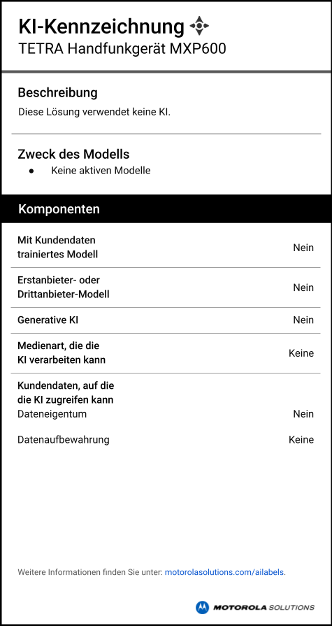 Die KI-Kennzeichnung bietet Informationen darüber, ob und wie MXP600 künstliche Intelligenz nutzt. Mehr erfahren