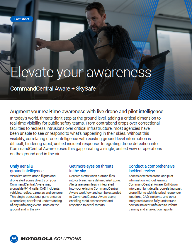 Augment your real-time awareness with live drone and pilot intelligence from SkySafe in CommandCentral Aware.