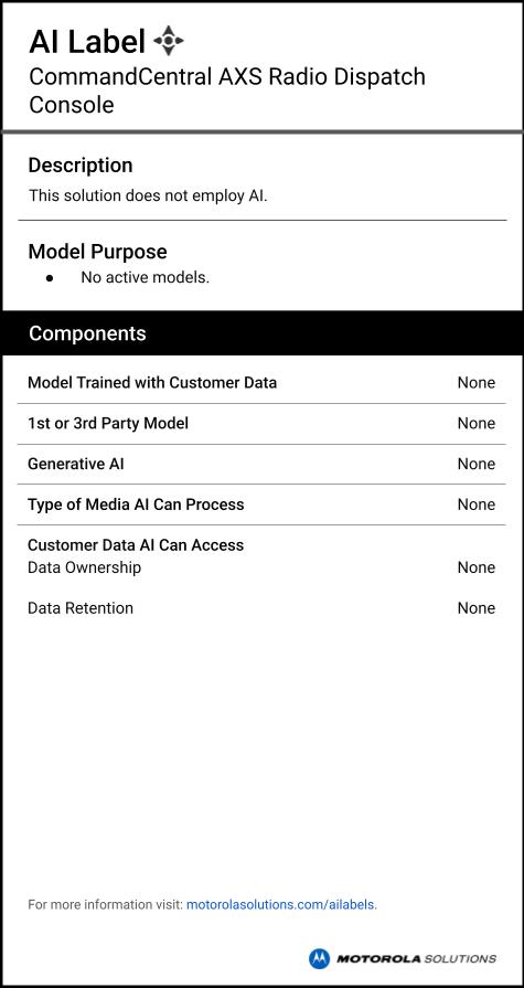 AI labels provide information on if and how CommandCentral AXS leverages artificial intelligence. Learn more