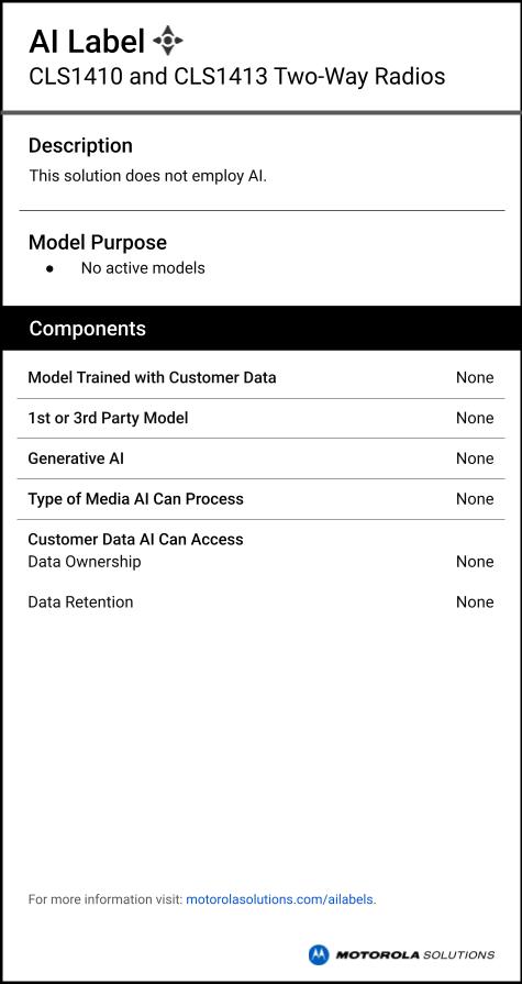 AI labels provide information on if and how CLS1410 and CLS1413 leverages artificial intelligence. Learn more
