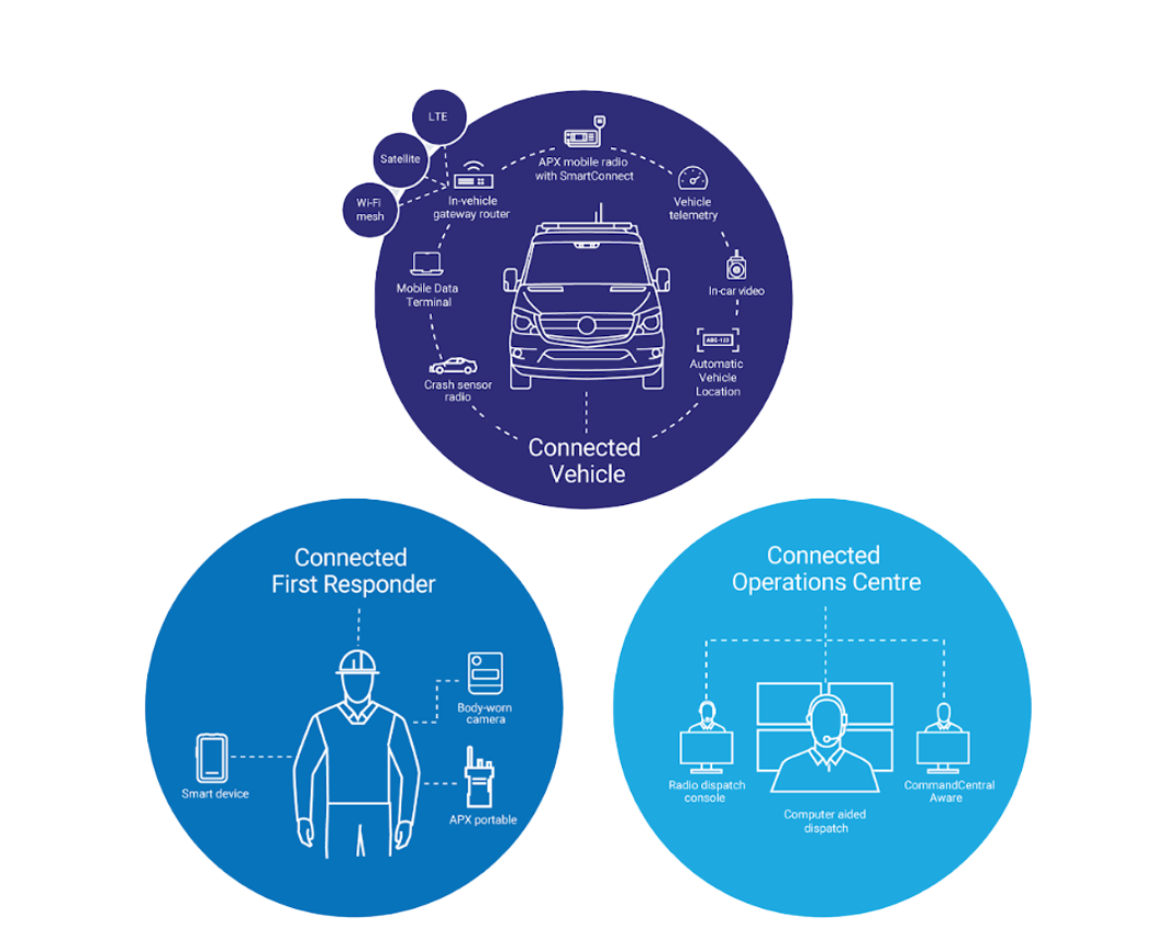 In rapidly developing situations, time is critical. The Connected Vehicle automatically locates and establishes the strongest line of voice communication, ensuring you receive vital up to the minute data, allowing you to respond swiftly, and without delay.