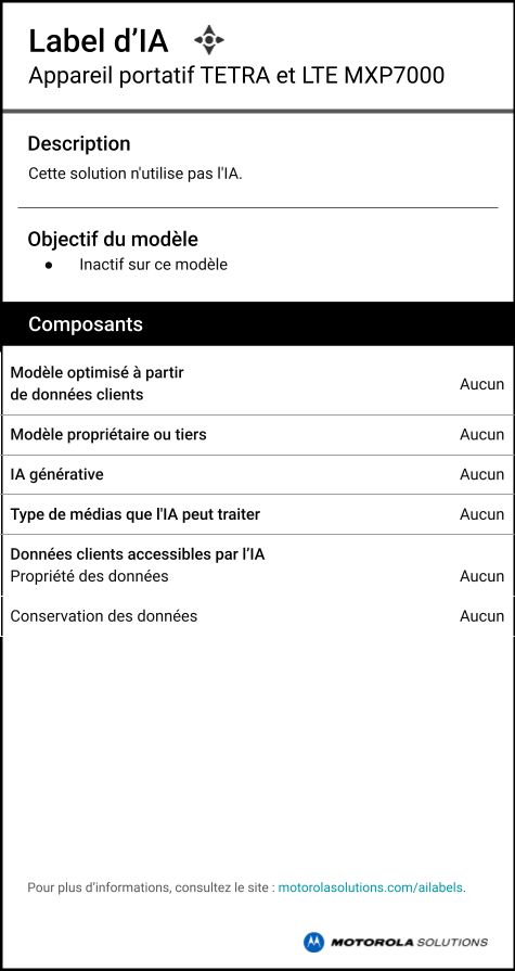 Le MXP7000 fournit des communications critiques voix et données TETRA et 4G LTE dans un appareil Android sécurisé et robuste. Doté d'un grand écran tactile, d'une technologie audio innovante, du Bluetooth 5.1, d'une batterie remplaçable, il peut également excécuter des applications Android. Il est facile à déployer et à gérer et les mises à jour de l'appareil peuvent être optimisées grâce aux mises à jour OTA (Over-the-Air) sur le réseau Wi-Fi.